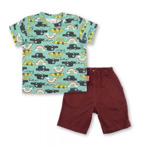 Infant Round Neck Short Sleeve Tee with Bermuda Pants – Green