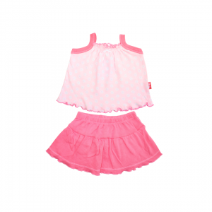 BeBe Infant Girl Suit – Floral Pattern Spaghetti Tee w. Panty Skirt (Pink)