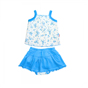 BeBe Infant Girl Suit – Floral Pattern Spaghetti Tee w. Panty Skirt (Blue)