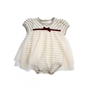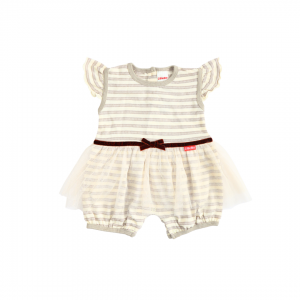 BeBe Infant Girl Romper – Round Neck Puff Short Sleeves Romper (Brown)