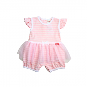BeBe Infant Girl Romper – Round Neck Puff Short Sleeves Romper (Pink)