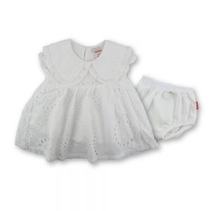Infant Short Sleeve Front Opening Eyelet Tee With Short Pants – Beige