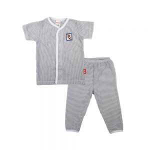 Infant Short Sleeve Front Opening Eyelet Tee With Long Pants – Grey