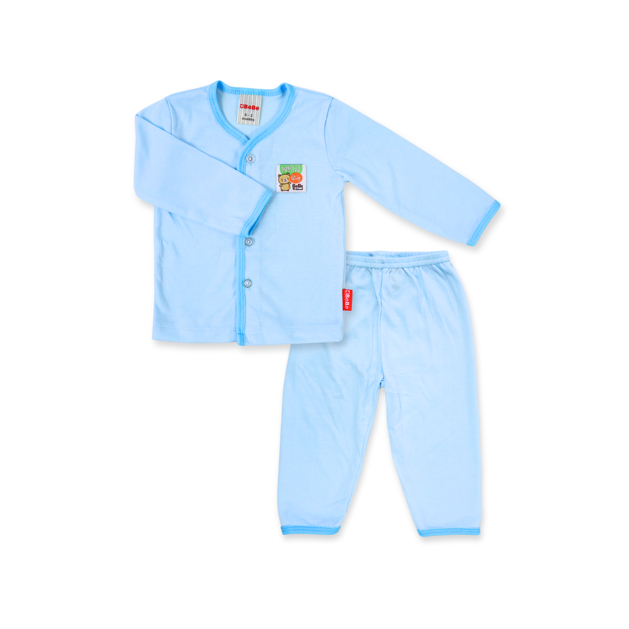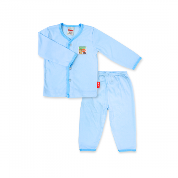 BeBe Long Sleeves Infant Suit with Cartoon Badge (Blue)