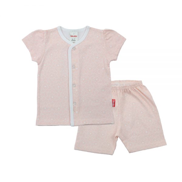 Front Opening Puff Short Sleeve Tee With Bermuda Pants – Peach