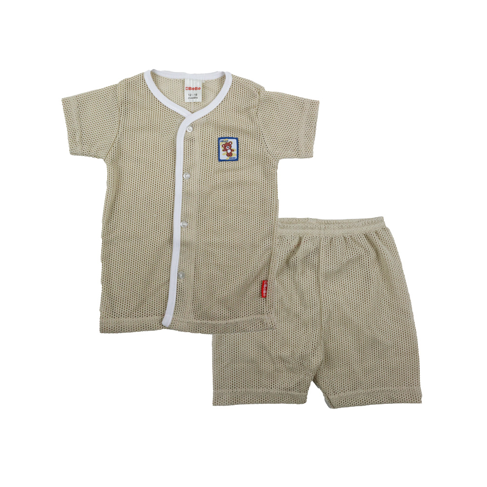 Infant Short Sleeve Front Opening Eyelet Tee With Short Pants – Beige