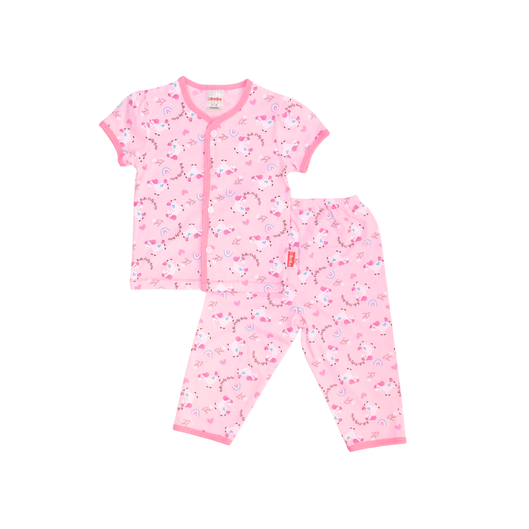 Infant Girl Basic Suit – Puffed Short Sleeves w. Long Pants (Pink Pretty Horse)