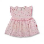 Infant Round Neck Puff Short Sleeve Dress with Panty – Navy