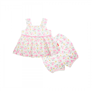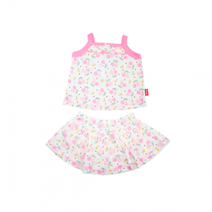 BeBe Infant Girl Suit – Floral Pattern Spaghetti Tee w. Panty Skirt (Pink)